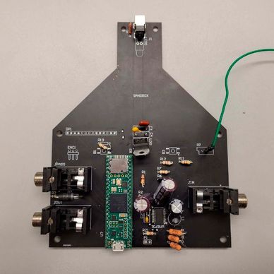 This note analysis task has hard-real time constraints, insofar as they need to execute fast enough so the delay between the musician playing the guitar and hearing the beat is imperceptible. In this vein, we set a goal of detection and translation for 20ms of latency, since this is the limit for humans distinguishing notes, and we ended up with a latency of around 40ms. In designing our system, we quickly discovered that the processors which are powerful enough to perform this task are much too difficult to solder by hand since they tend to have a BGA footprint. This is partially why we ended up choosing the Teensy 4.1 board to work with. The Teensy’s CPU, an ARM-M7 core clocked at 600MHz with dedicated hardware for floating-point math and FFTs, really gave us room to work with and allowed us to come close to our timing constraints. We were not concerned with power consumption because the pedal is always plugged into wall power during use. At a low level, we take input from the guitar at the right port, from a standard instrument cable, and process it with the onboard ADC from a WM8731 audio codec. This data is then sent to the Teensy 4.1 using the I2S protocol and out through the left port.